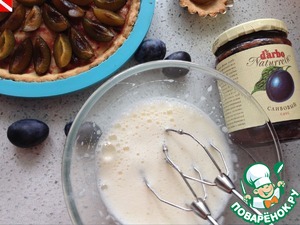 Крем выливаем поверх слив, ставим в разогретую до 180 градусов духовку на 15-20 минут