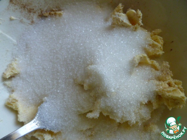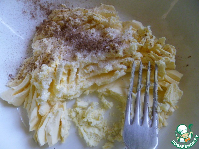 Берем холодный маргарин, добавляем корицу и ванильный сахар.