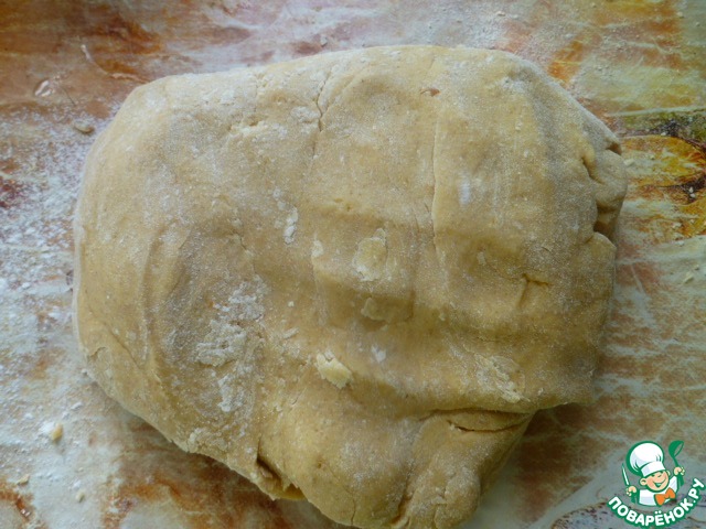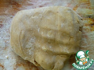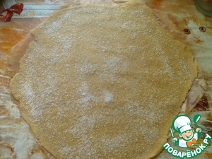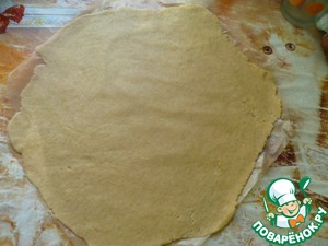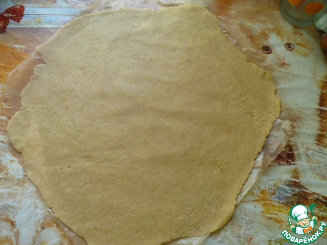 Затем отрываем кусок теста и на пергаменте раскатываем, как можно тоньше.