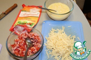 Пирожки из омлета с начинкой из томатов, колбасы и сыра с майонезом