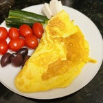 Так вот в процессе приготовления этих мини пицц, у меня оставалось взбитое яйцо и начинка (помидоры, сыр, колбаса), и вот как-то раз я вылил яйцо на сковороду и выложил начинку сверху, только яйца было много, а начинки не очень (в смысле - не очень много), вот я и накрыл ее свободным краем зажаренного яйца. Получился этакий пирожок, неровный, кривоватый, горбатый, но вкусный и прикольный