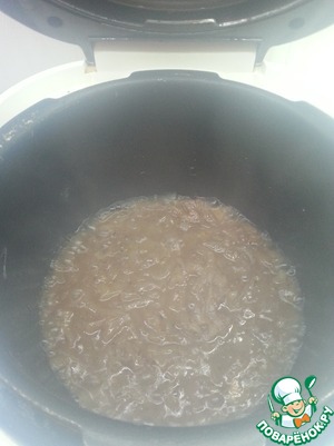 Затем открыть крышку и тушить ещё несколько минут до выпаривания жидкости (её будет много). Я выпаривала жидкость в режиме "бисквит" с открытой крышкой (минут 15 минимум).