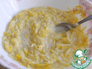 • Перемешиваем. Если в иных вариантах кабачковых оладьей идет «борьба» с лишней жидкостью, у нас это толь выигрыш, она нам не лишняя.
