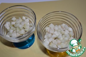 Сверху положить грушу, очищенную от кожицы и семян и нарезанную кубиками.