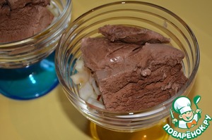 Люблю не сложные в приготовлении десерты. Вот и этот десерт (из книги "Энциклопедия праздничного застолья", авт. В. Бугаенко) из их числа. Для приготовления данного десерта требуется минимум времени и усилий. К тому же, взяв его за основу, можно до бесконечности "играть" с различными фруктово-ягодными наполнителями, с разным мороженым, с разным шоколадом, с разным ликером. При этом будет всегда получаться вкусный и "Волшебный" десерт. Единственный недостаток - десерт не детский. Впрочем, недостаток с легкостью можно исправить, заменив ликер на сироп.