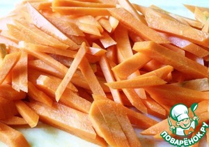 Морковь тоже помыть, почистить и нарезать брусочками.