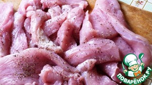 Филе нарезать на порционные куски. Посолить, поперчить по вкусу.