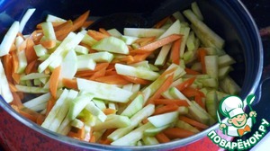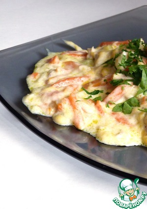 На овощную подушку выкладываем филе. И оставляем тушиться минут на 20-30.