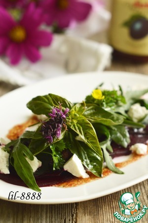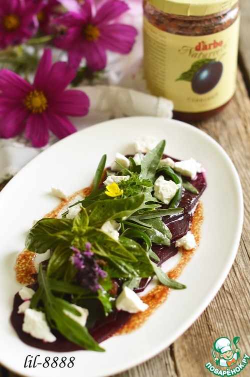 Салат из свеклы, салатного микса и козего сыра со сливовой заправкой