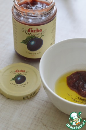 1. Для заправки смешать масло. лимонный сок. сливовый соус, соль и перец.