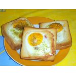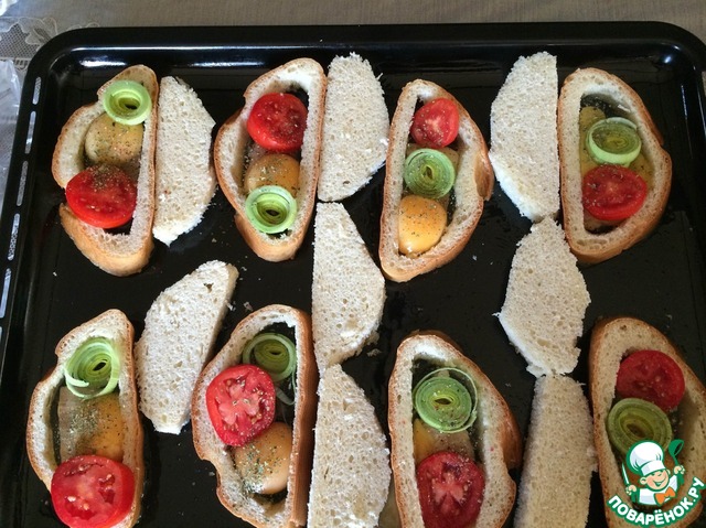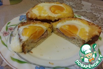 Далее, в каждую хлебную "формочку" разбиваем по 1-му яйцу.