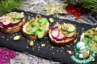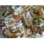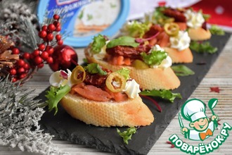 Украшаем согласно полету вашей фантазии: помидорами, тертым сыром, маслинами, зеленью, луком и т. д.