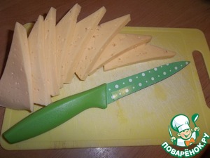 Режем сыр. Оставляем кусочек для посыпки сверху.