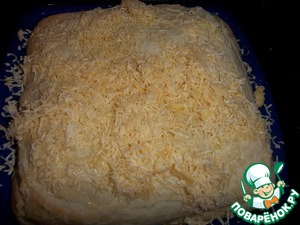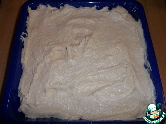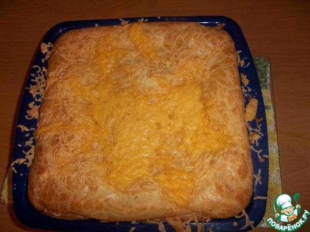 И поверх сыра выкладываем оставшееся тесто. Ставим в разогретую духовку до 180С на 40 минут.