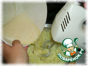 Добавить чуть взбитые яйца и хорошо перемешать. Я взбивала миксером.