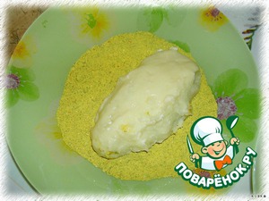 Каждую мясную котлету кладем между двумя картофельными лепешками и соединяем их края.