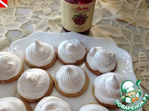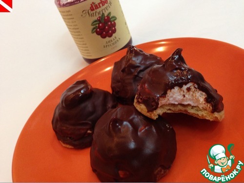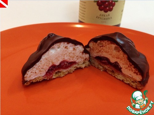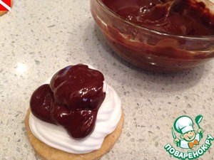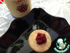 Этого времени нам будет достаточно, чтобы на середину каждого печенья выложить по 1 чайной ложке соуса из дикой брусники d'arbo. Этого ингредиента нет в классическом крембо.