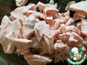 Тем временем делим рыбку руками на кусочки, отделяя от шкурки и костей.