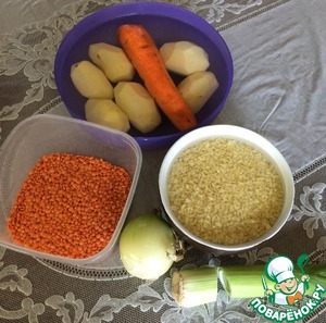 Ингредиенты для «Суп с лососем, булгуром и чечевицей»: