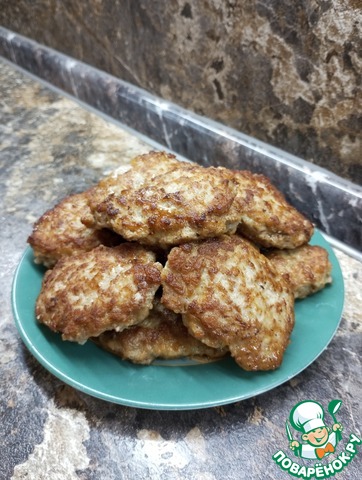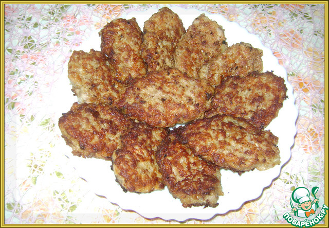 Выкладывать по 1 стол. ложке фарша на сковороду и жарить на растительном масле, до появления румяной золотистой корочки.
