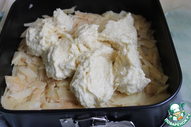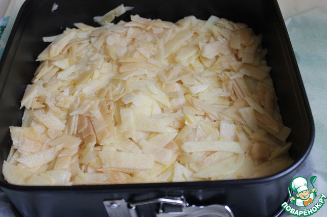 Достаем наш корж с духовки, выкладываем на него яблоко.