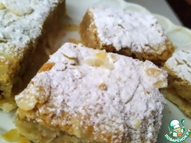 Даем пирогу остыть в форме. Затем убираем форму и нарезаем на пирожные. И посыпаем сверху сахарной пудрой. Приятного аппетита!