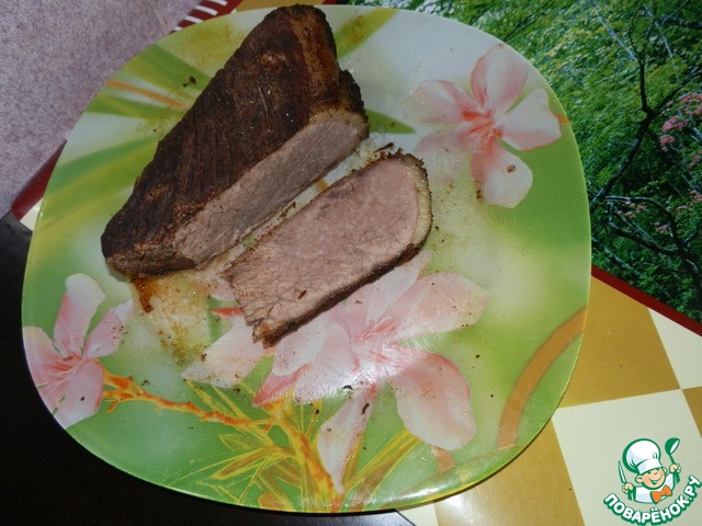 И последнее: хорошего цельного куска у меня не было, было обрезанное мясо небольшими кусочками. Я, не подумав, натерла их солью. Получилось пересоленное.