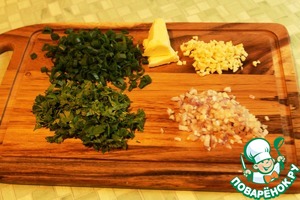 Чеснок, лук-шалот, зеленый лук, кинзу мелко порубить.