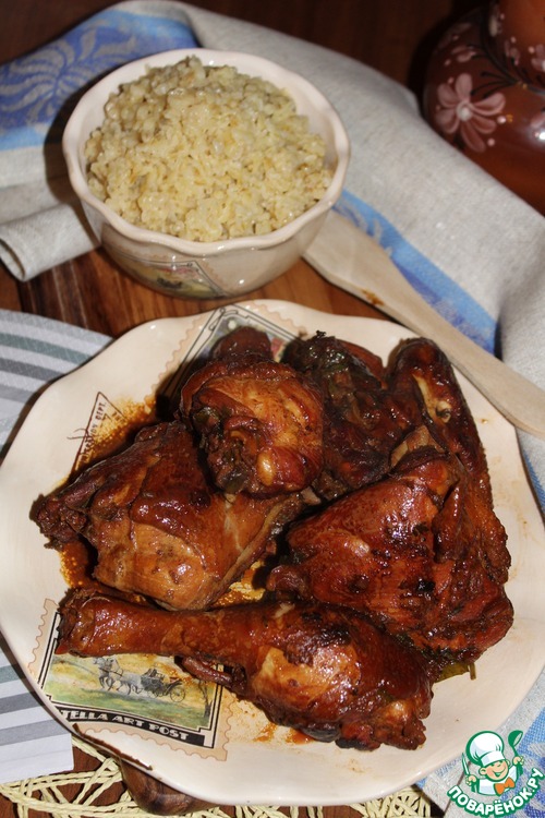 Курица получается просто изумительно вкусной! И прекрасно сочетается с рассыпчатым булгуром или рисом.