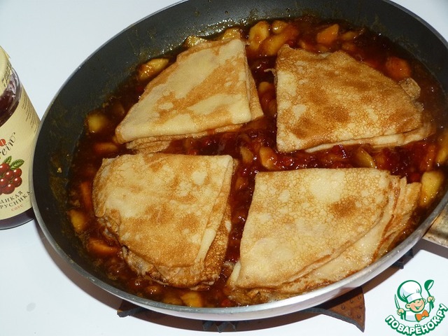 Рецепт «Десертные крепы с яблочно-брусничным соусом»: