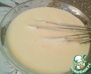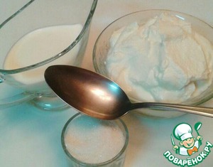 Делаем соус для смазки пирожков. Смешиваем сметану, 1ст. л. сахара и сливки