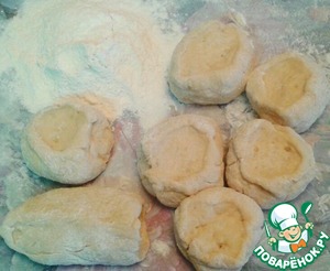Рецепт «Сдобные пирожки с творогом в сметанном соусе»: