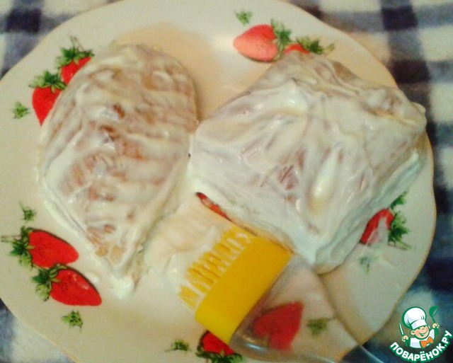 Оставшееся тесто раскатываем толщиной 5-6 мм и режем на 20 квадратов.