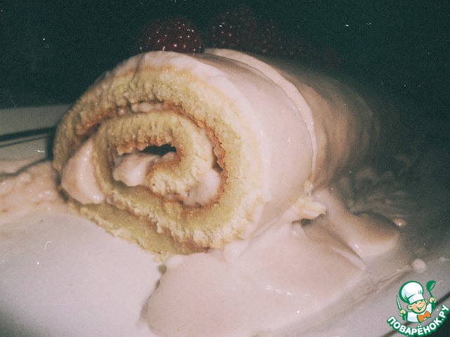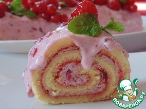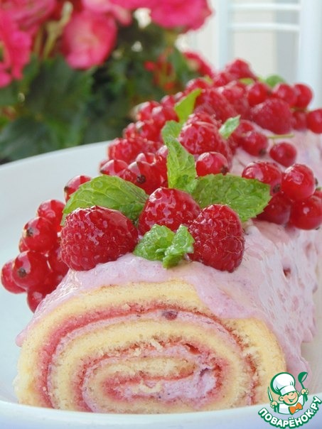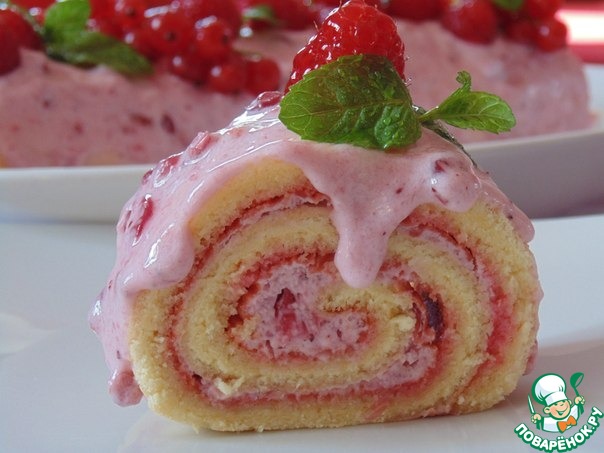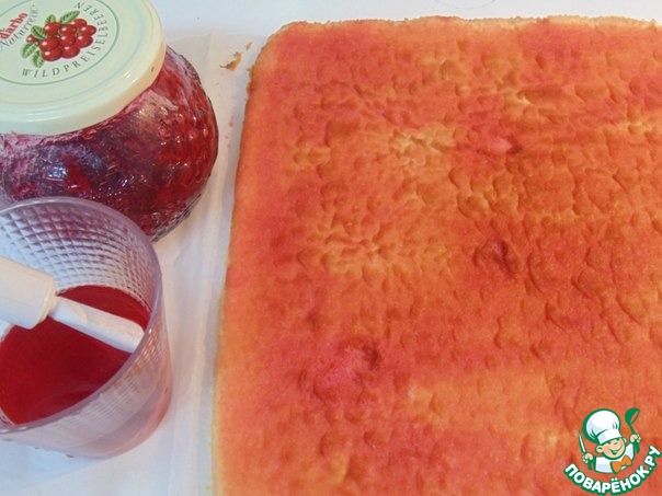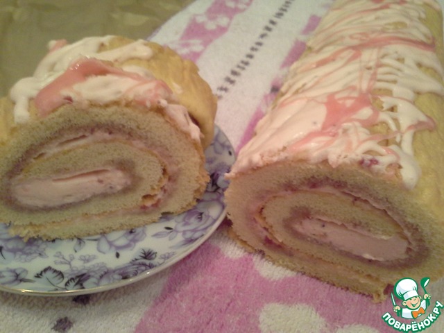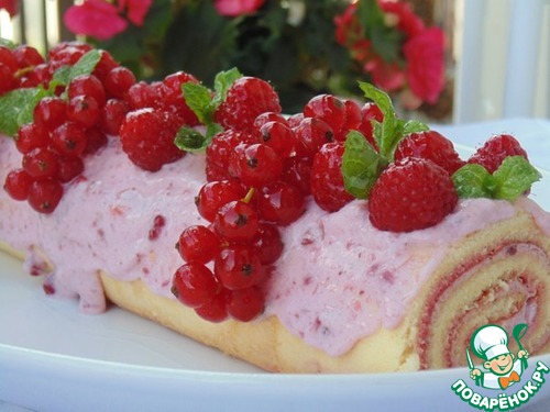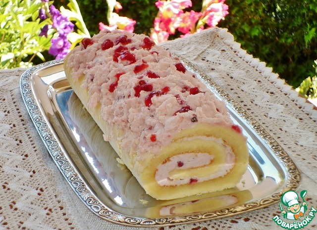 Рецепт «Нежный рулет с брусничным кремом и маршмеллоу»: