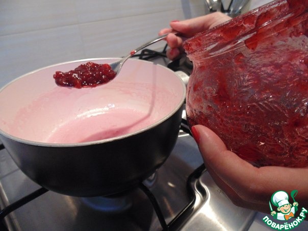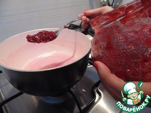Добавить брусничный сироп d'arbo, перемешать, снять с огня, остудить.
