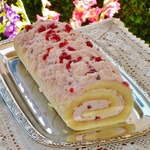 Нежный рулет с брусничным кремом и маршмеллоу