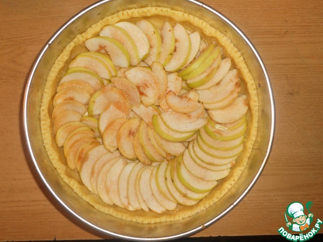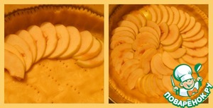 Выкладываем яблоки по кругу, накладывая немного одну половинку на предыдущую.