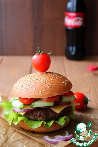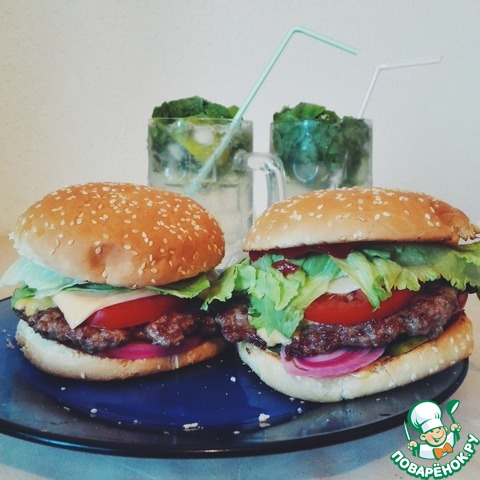 Вот и все. Достаточно простые манипуляции с бесхитросными продуктами и идеальный бургер готов. Это вам не какой-то бургер приготовленных с покупными булочками. Это самый настоящий классический мясной бургер сделанный от А до Я. Ну разве что мы пшеницу и корову не выращивали ☺