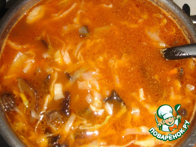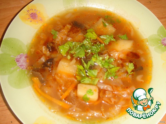 Рецепт «Русские щи из свежей капусты с грибами»:
