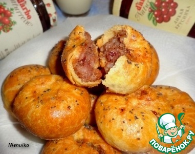 Кныш – блюдо, характерное для белорусской кухни. Представляет собой круглый пирожок небольшого размера с начинкой. Начинка для данного блюда может быть как несладкой, так и сладкой. Предлагаю приготовить кныш со сладкой начинкой из шоколадного риса и с добавлением брусничного и клюквенного соусов.