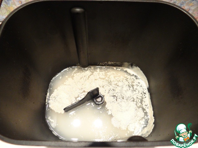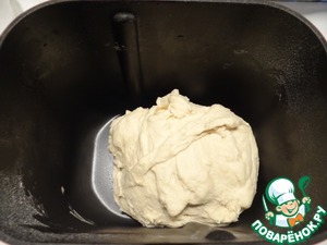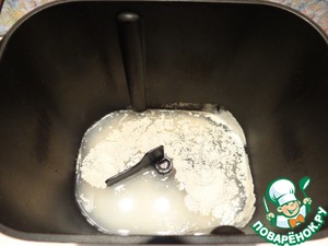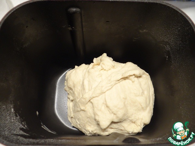 Помещаю ведерко в хлебопечку, включаю режим замеса теста.