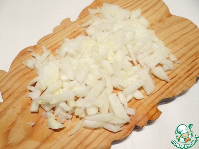 Репчатый лук чищу, мою, нарезаю мелко кубиками.