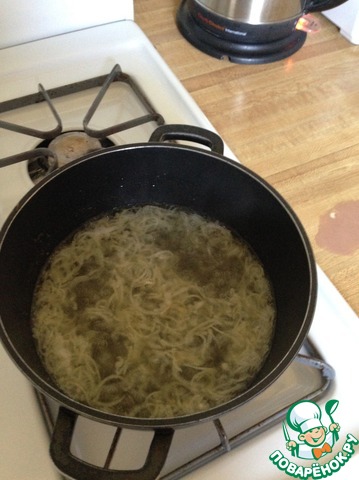 Добавляем воды (желательно кипяток, ускоряет процесс) и соль. Попробуйте воды на вкус, она должна быть пересоленной, но не сильно.