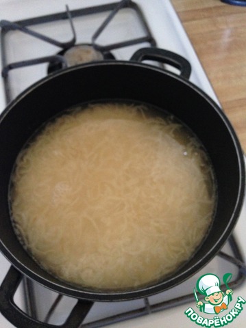 Используем посуду с непригораемым покрытием (тефлон или чугунный казанок), разогреваем её на среднем огне, добавляем масло до 100 мл, когда оно хорошо разогреется забрасываем нарезанный полукольцами лук и хорошо прожариваем.