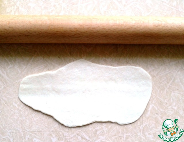 Сверните лепёшку рулетиком, подгибая боковые стороны.