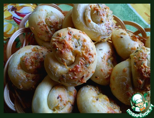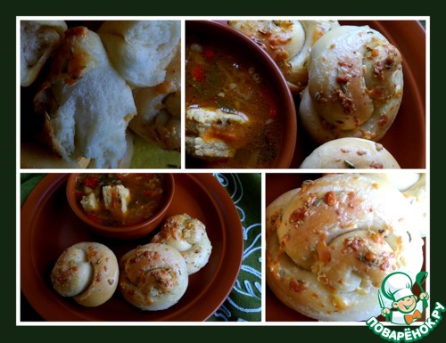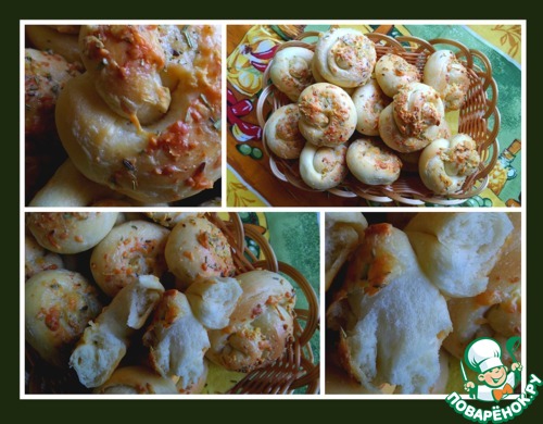 Вкусненькие узелки с сырно-пряной корочкой и чесночный ароматом подойдут к любому первому блюду.