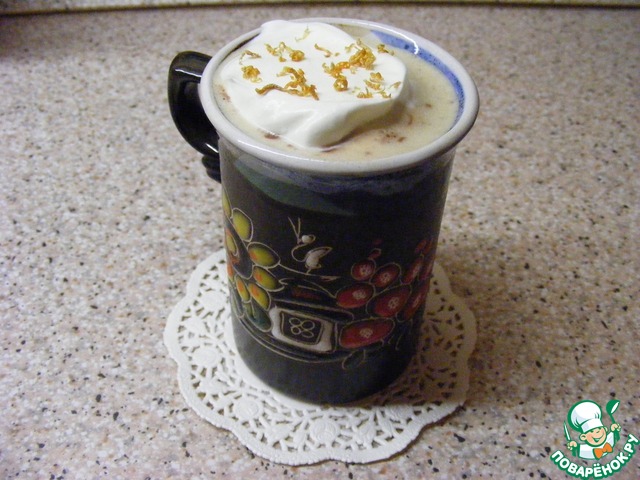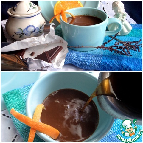 Приготовить горячий шоколад. Для этого на небольшом огне, при постоянном помешивании, доводим до кипения вышеполученную смесь
