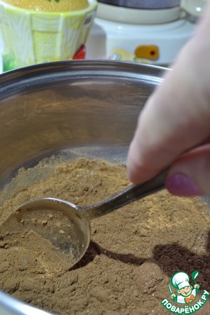 В небольшой кастрюльке смешать сахар, какао и молоко.