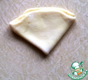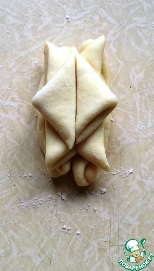 Готовое тесто вымешайте, разделите на 12 кусочков.