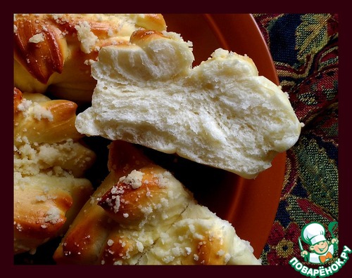 Выпекайте в разогретой до 200 градусов духовке 20 минут (температура мякиша готовой булочки 94-97 градусов)
